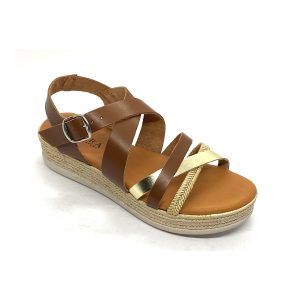 - Sandalia para señora de piel tipo BIO con doble ajuste de velcro y cuña mediana. Planta acolchada BIO. Marca: Rodri Color: Cuero