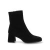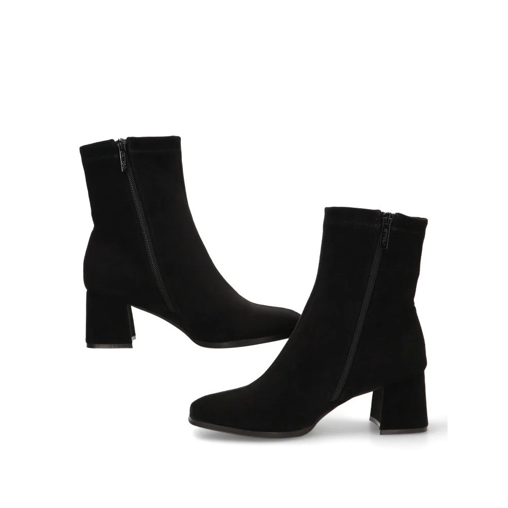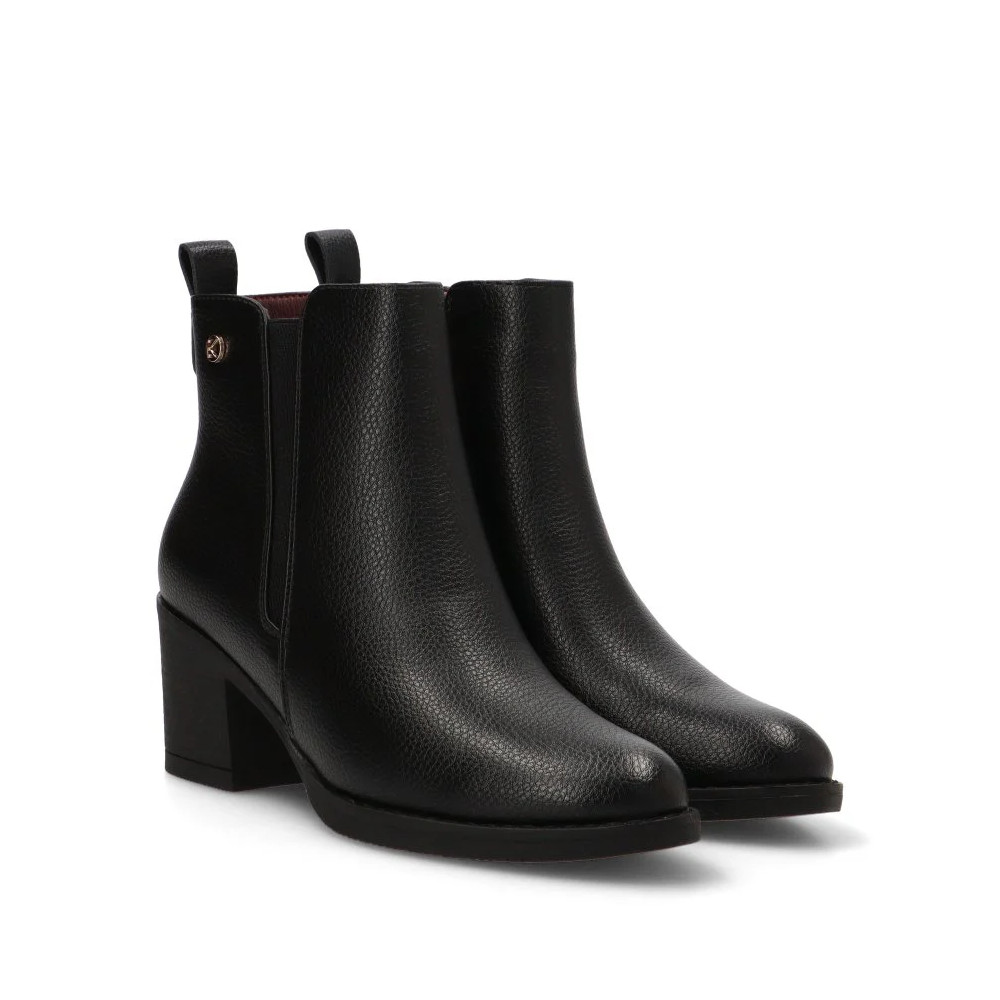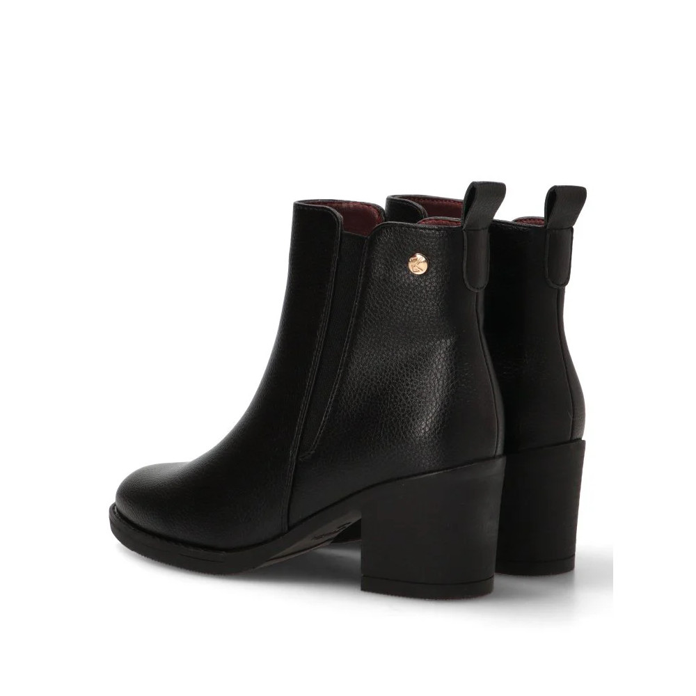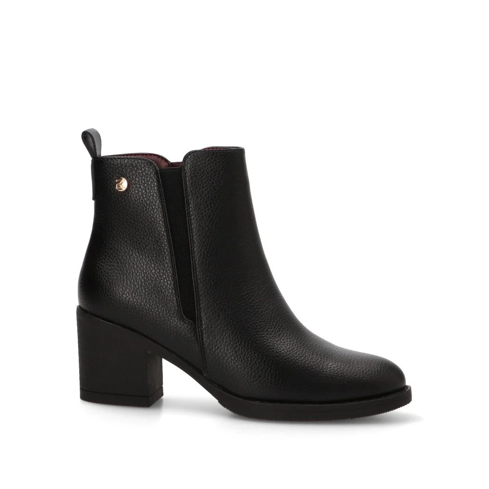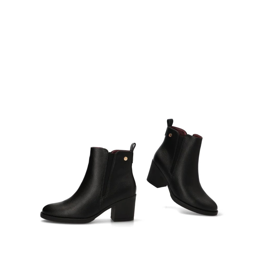 Este botín, con su distintivo y versátil color negro, es ideal para crear looks sofisticados y casuales a la vez. Su estilo diario se adapta a una gran variedad de ocasiones, desde una jornada laboral hasta una salida de fin de semana. El tacón medio de 6,50 cm proporciona la altura perfecta para estilizar la figura sin sacrificar la estabilidad, permitiéndote caminar con seguridad y confianza. La caña de 16 cm abraza el tobillo, creando una silueta limpia y favorecedora.