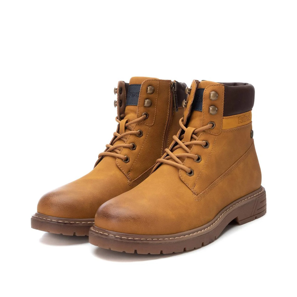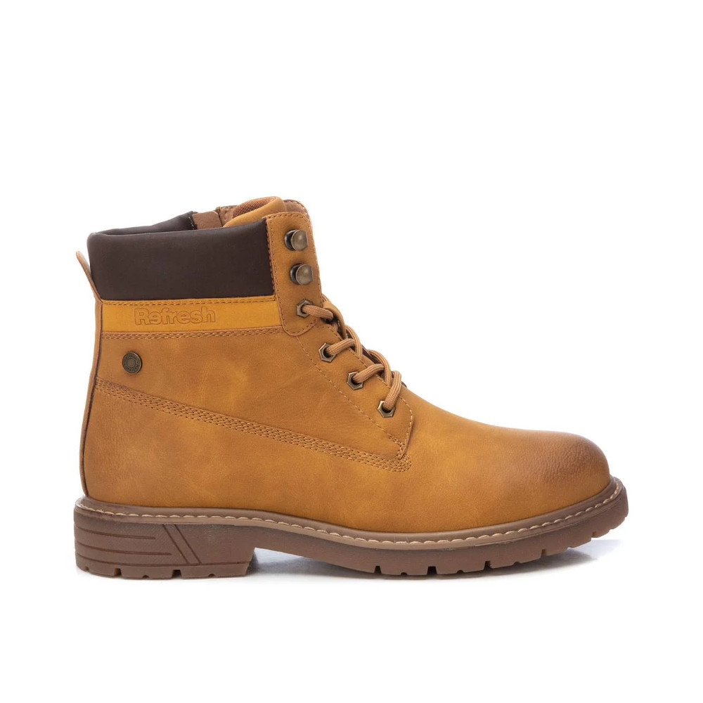 Botín de hombre, de la marca Refresh. Fabricado en un material que imita la piel. Cierre mediante cremallera lateral y cordones para un mayor ajuste. Modelo estilo montañero con cómoda suela de goma antideslizante. Este modelo ha obtenido el certificado vegano por la organización mundial PETA (Organización de los derechos de los animales).