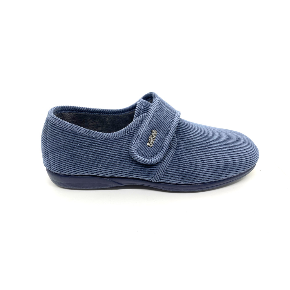 Zapatilla cerrada de pana para caballero de la marca Devalverde con ajuste de velcro. Perfecta para el mejor bienestar en el hogar.