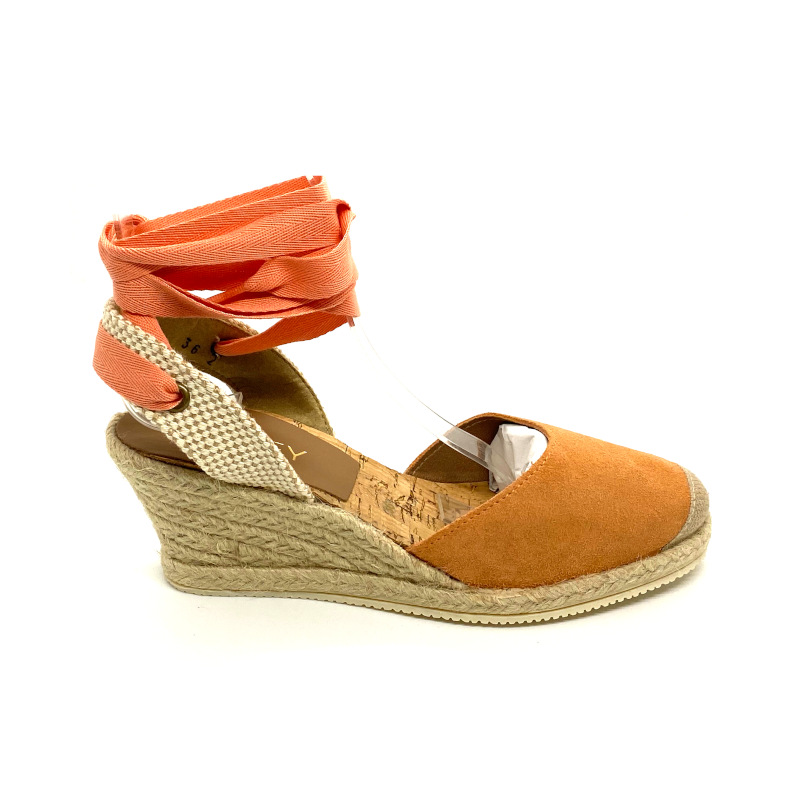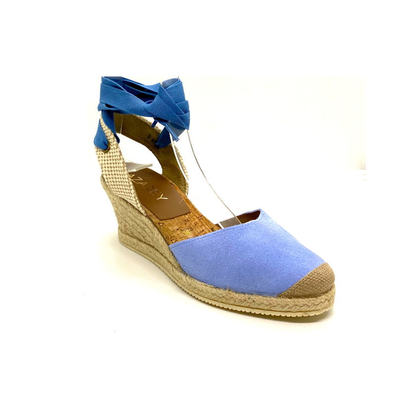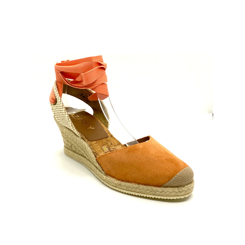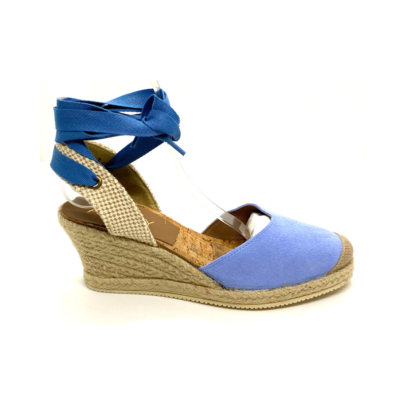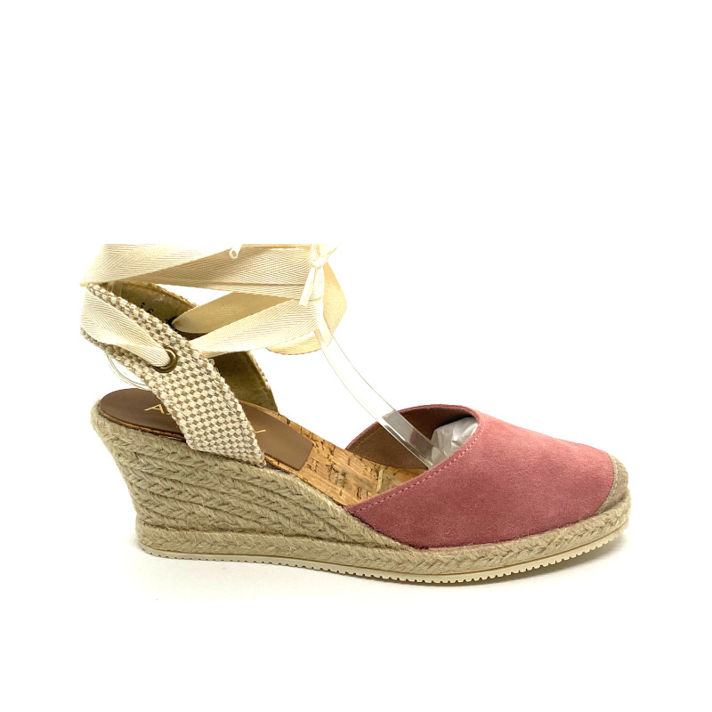 Cuña (cáñamo) en piel serraje y agarre de cuerdas al tobillo en variedad de colores.