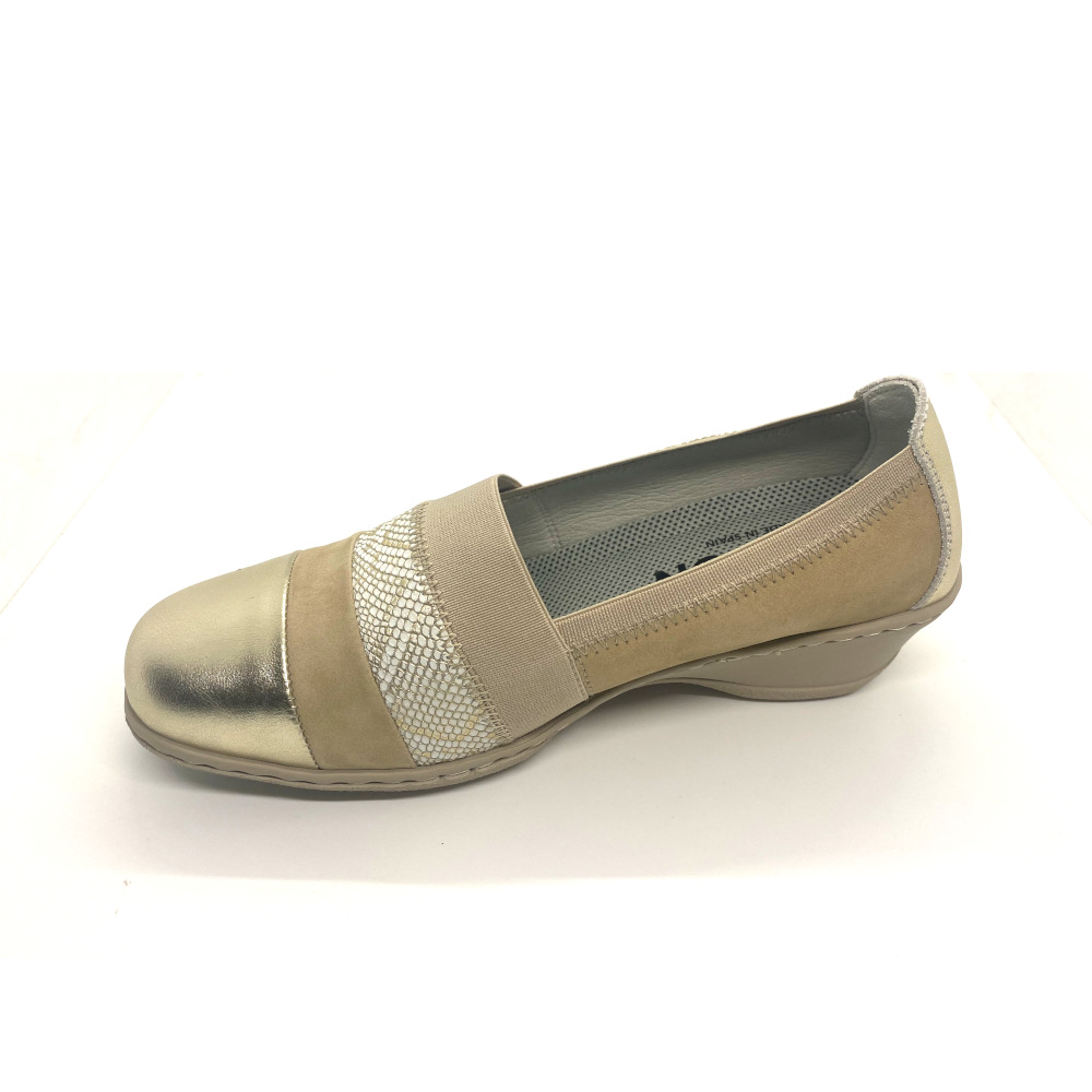 SKU: 01087 Categorías: ¡¡ ULTIMAS NOVEDADES !!, ANCHO ESPECIAL, Copete, Cuñas, Mocasines, Plantilla extraible, Señora, Señora New Etiquetas: ancho especial, Champagne metalizado, Mocasín, Notton, Plantilla extraible