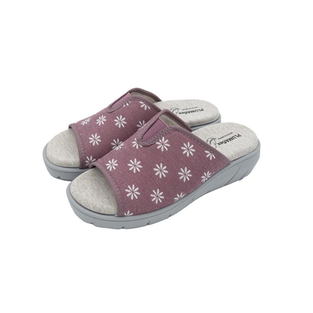 Zapatilla de casa con cuña semidescalza de la marca ROAL con PLUMAFLEX para señora y elástico ajustable.