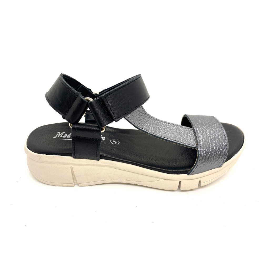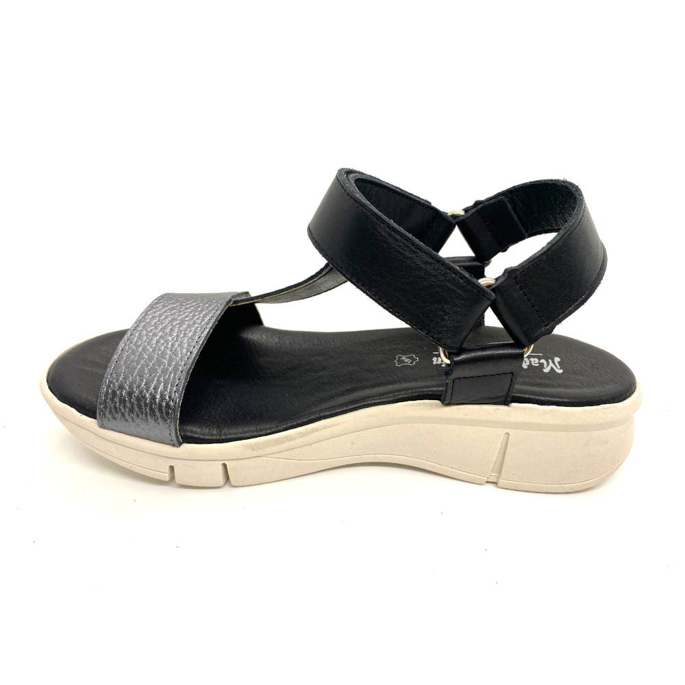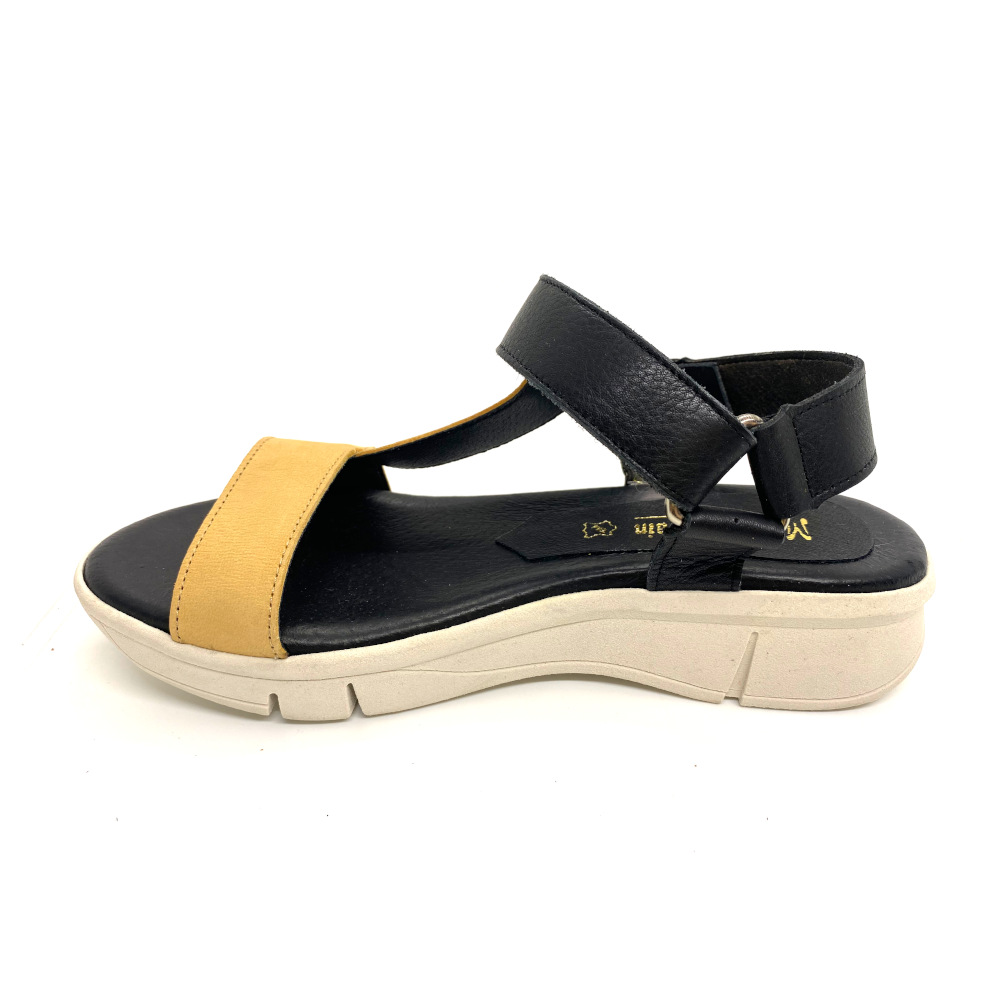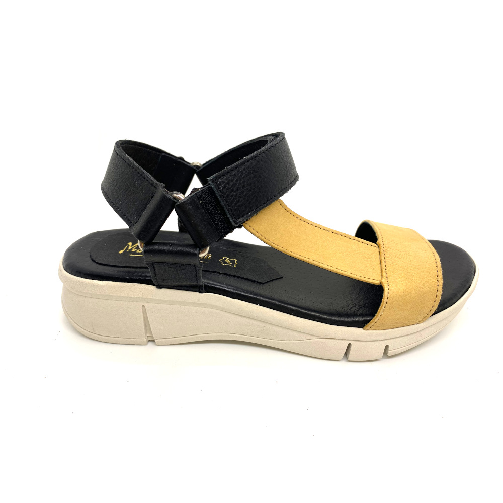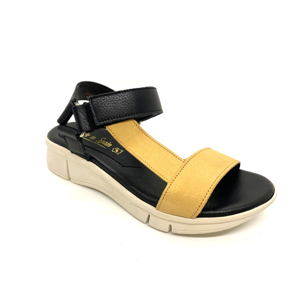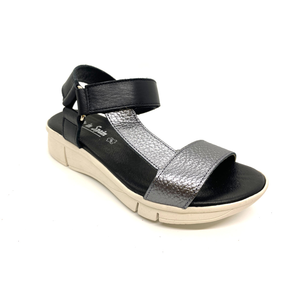 Sandalia última tendencia de Rodri con suela clara y planta de gel fabricada en piel y cierre de velcro. La comodidad de esta sandalia te hará disfrutar de caminar este verano.