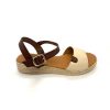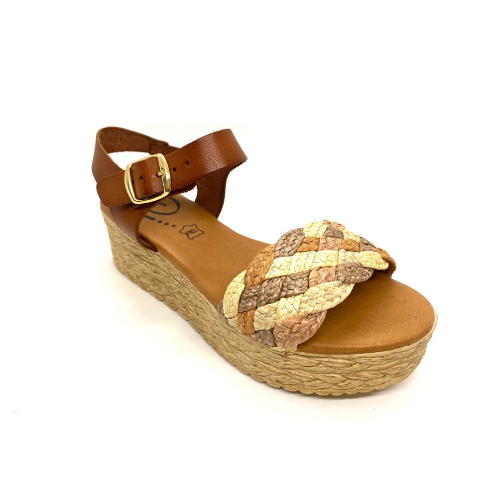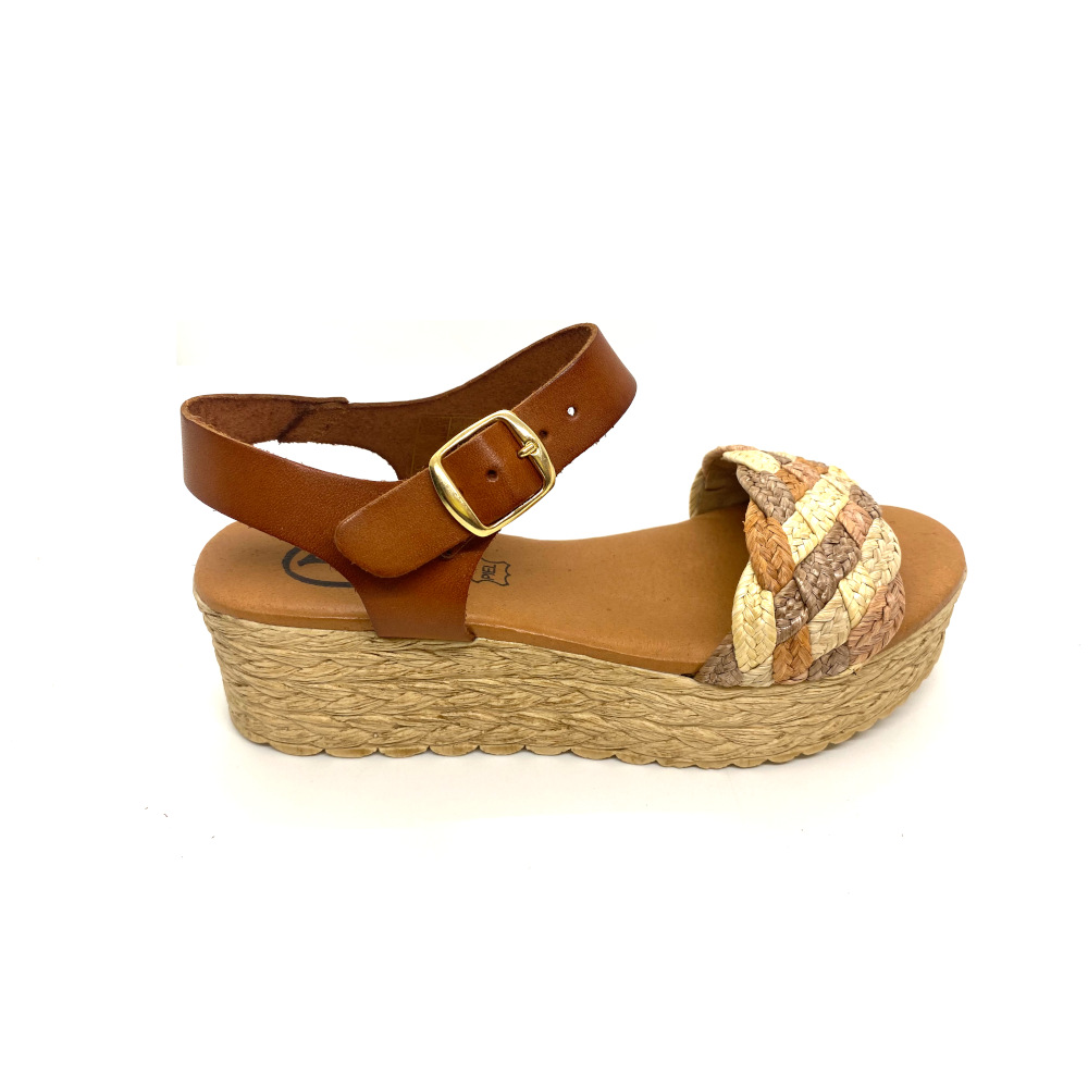 Sandalia para señora de piel y plataforma con detalle trenzado de colores y planta de gel para el máximo confort de la marca Decal Shoes.