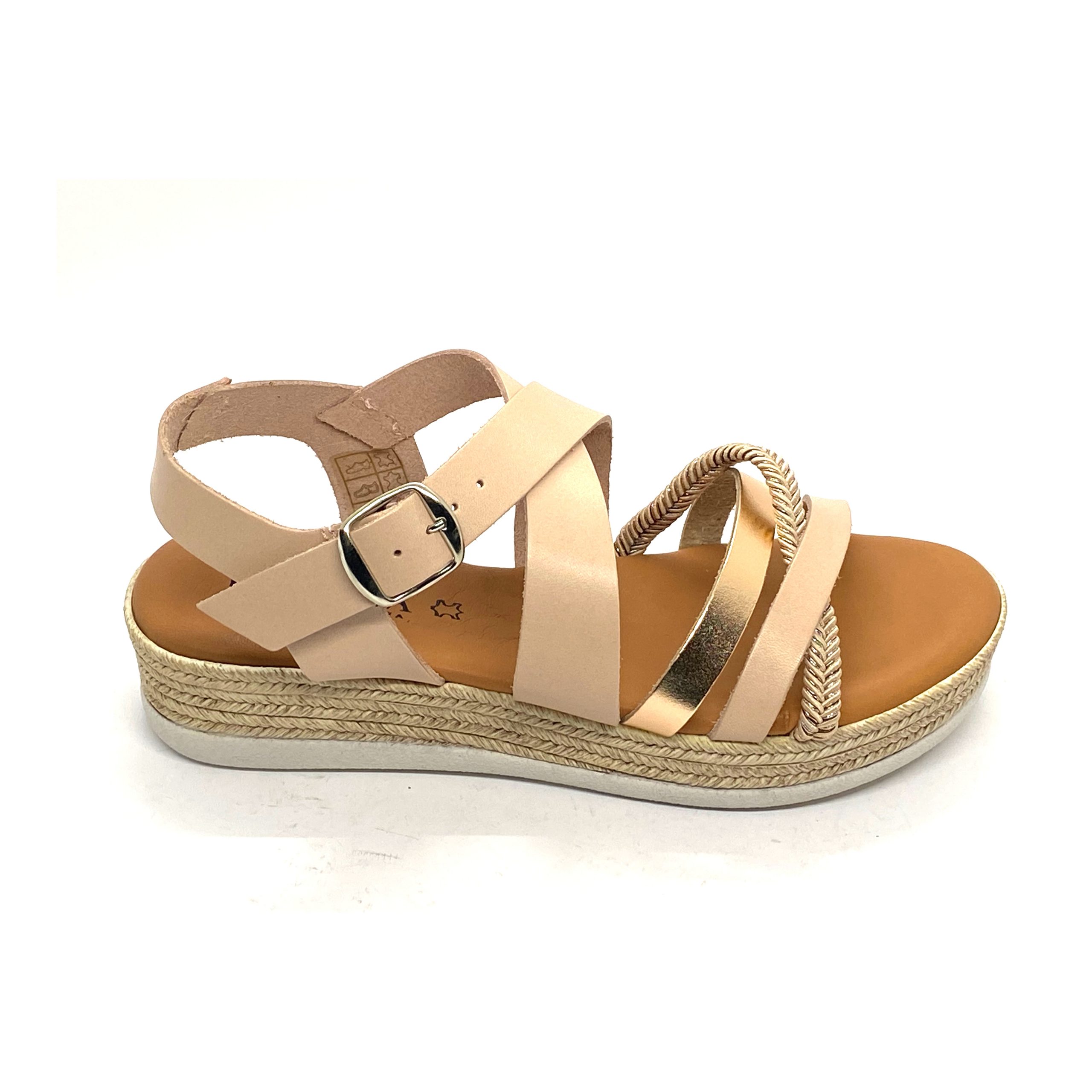 Sandalia de plataforma con tiras en piel vaquetilla y cierre de hebilla al tobillo. Tu compañera para esos outfits elegantes. Disfruta de este verano con tus Kelara.