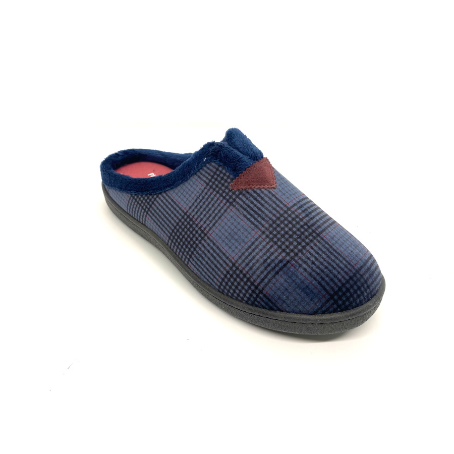 Zapatilla semidescalza con diseño de cuadros para caballero con plantilla extraible y PLUMAFLEX de la marca ROAL. Máximo confort para estar en casa.