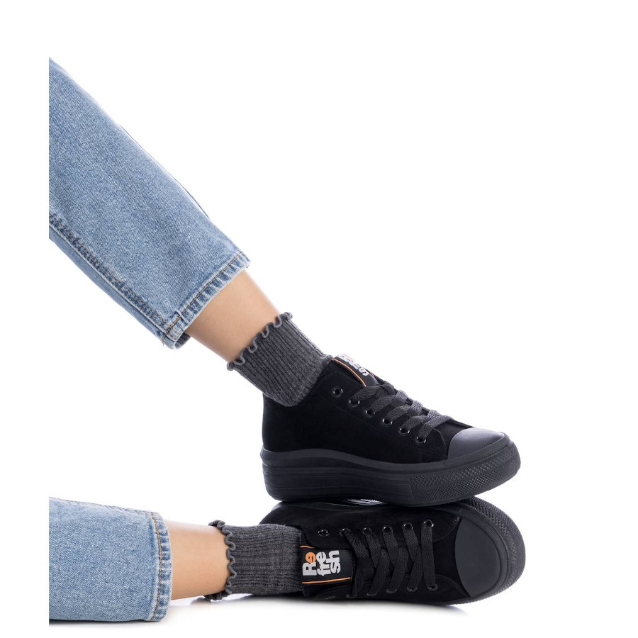 Zapatilla de mujer, de la marca Refresh. Fabricado en una suave antelina. Cierre mediante cordones ajustables. Suela con volumen de goma antideslizante. Modelo ideal para dar unos cm a tu look. Este modelo ha obtenido el certificado vegano por la organización mundial PETA (Organización de los derechos de los animales).
