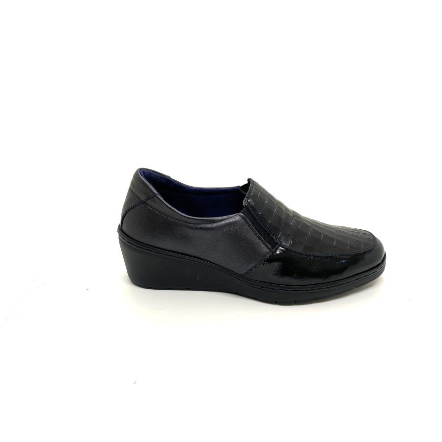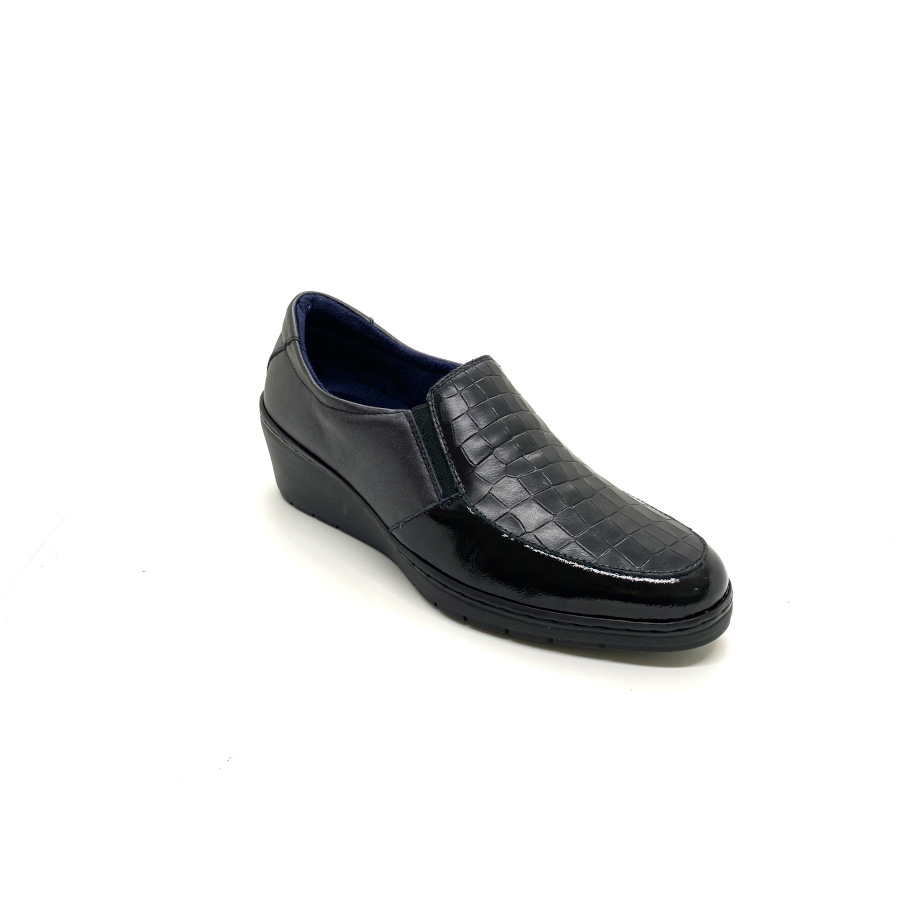 Zapato tipo mocasín para señora con cuña, interior térmico, fabricado en pieles de primera calidad y suela antideslizante. Plantilla extraible. Máxima comodidad y punto con NOTTON.