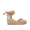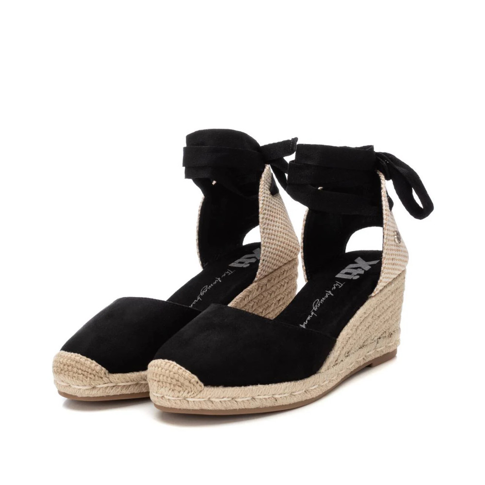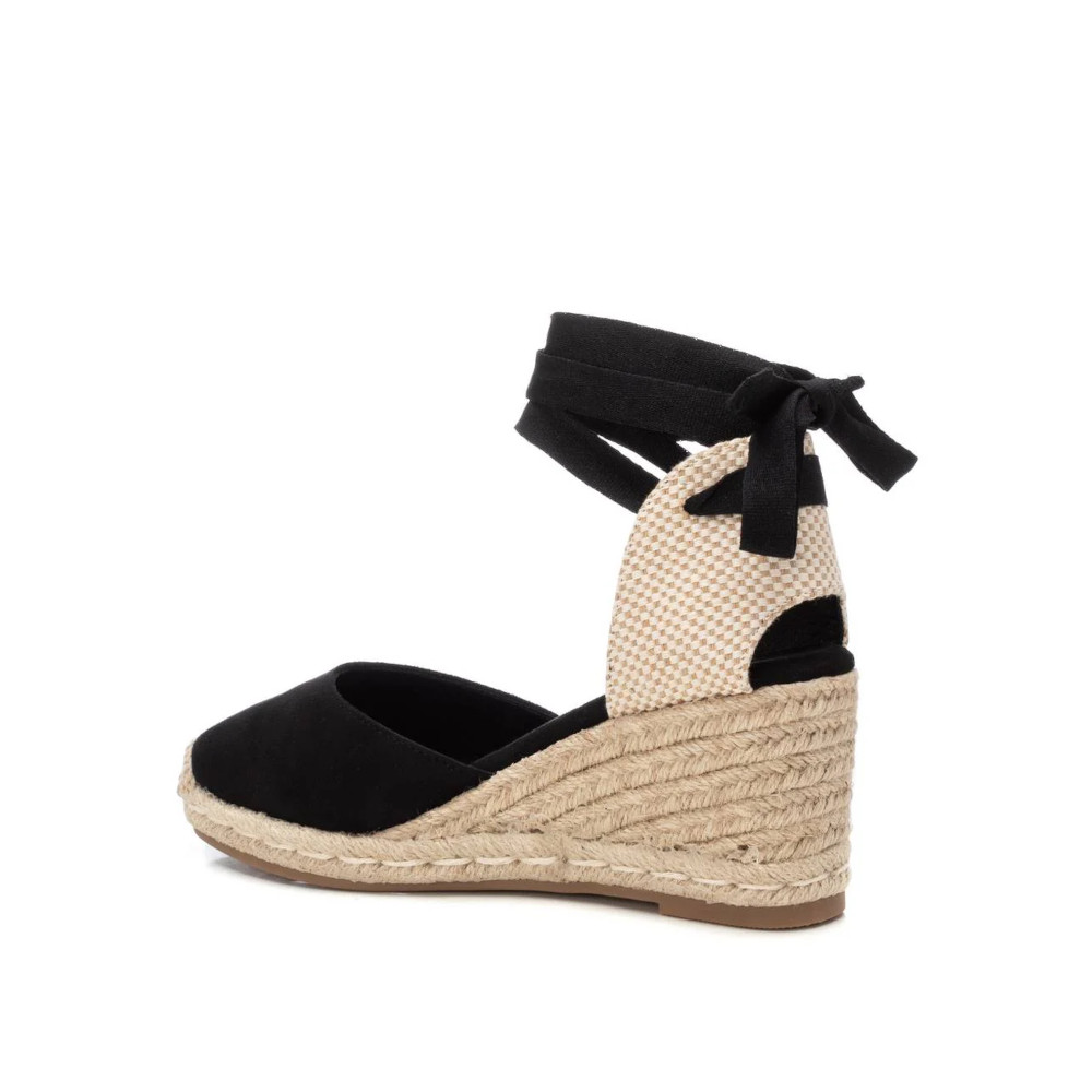 Valenciana de mujer, de la marca Refresh. Fabricada en antelina. Talón destalonado. Tiras para ajustar al tobillo. Cuña de 7 cm en yute. Suela de goma antideslizante. Este modelo ha obtenido el certificado vegano por la organización mundial PETA (Organización de los derechos de los animales).